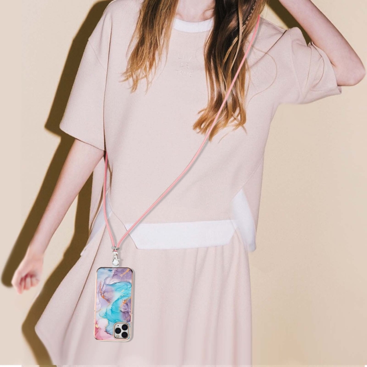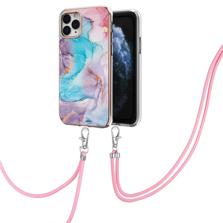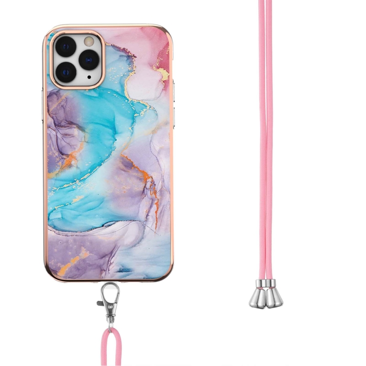 Estuche TPU para iPhone 11 Pro Patrón Galvanoplastia Imd a Prueba de Golpes con Cordón (Mármol Azul de la Vía Láctea)