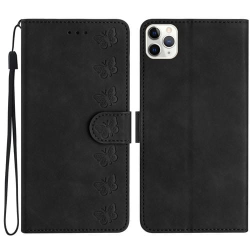 Funda para iPhone 11 Pro Seven Butterflies Caja de Teléfono de Cuero en Relieve (Negro)