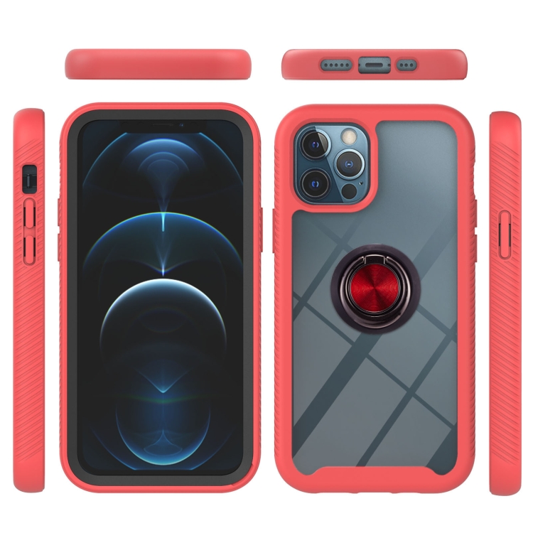 Funda protectora para iPhone 11 Pro Starry Sky Solid Color Series a prueba de golpes PC + TPU con soporte para anillo y función magnética (Rojo)