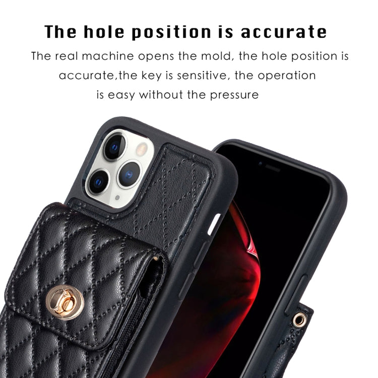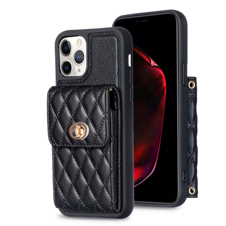 Funda de Cuero para Teléfono iPhone 11 Pro Rombico Vertical Hebilla de Metal (Negro)