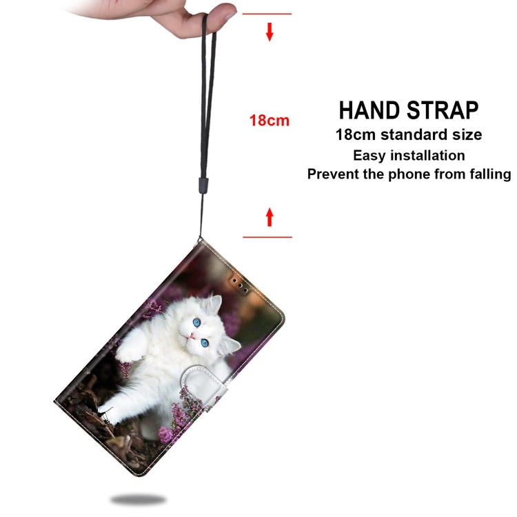 Funda de Cuero de Pu para iPhone 11 Pro Voltaje Dibujo a Color Cierre Magnético Tapa Horizontal Soporte Ranuras para Tarjetas (C08 Flower Bush Big White Cat)
