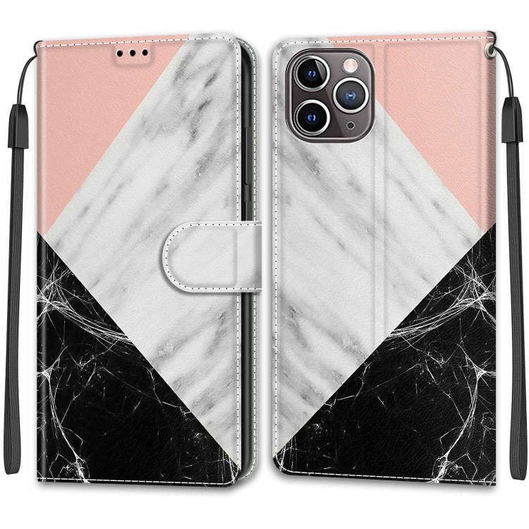 Funda para iPhone 11 Pro Cuero de PU Voltaje Dibujo Coloreado Cierre Magnético Tapa Horizontal Soporte Ranuras para Tarjetas (Rosa Blanco Negro)