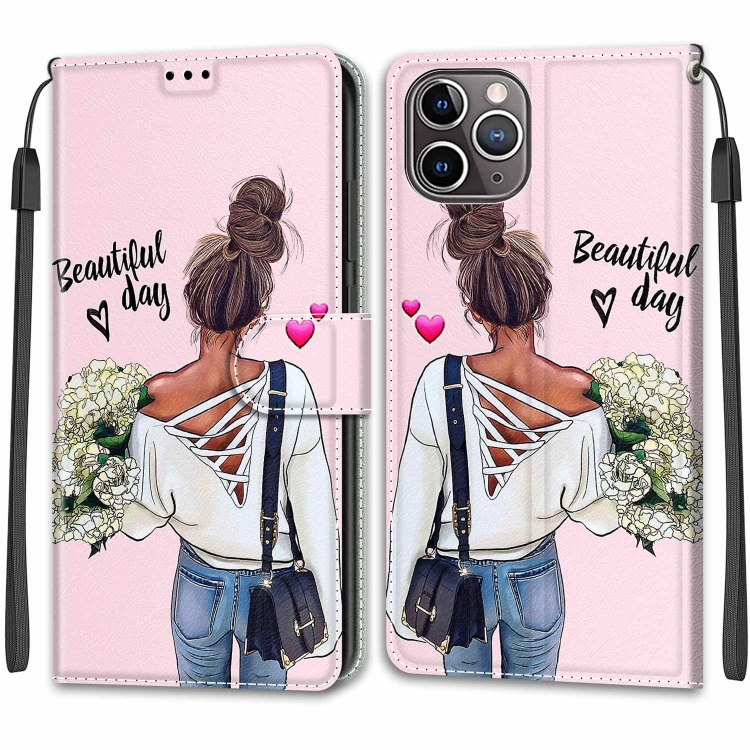 Funda de Cuero de Pu para iPhone 11 Pro Voltaje Dibujo Coloreado Cierre Magnético con Tapa Horizontal Soporte y Ranuras para Tarjetas (C09 Hug Flower)