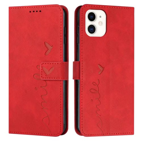 Funda de Cuero para iPhone 11 Skin Feel Heart Pattern (Rojo)