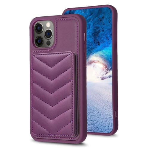 Funda para Teléfono Bf26 Wave Pattern Card Bag Holder para iPhone 12/12 Pro (Morado Oscuro)