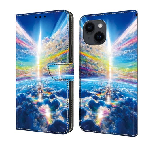 Funda de Cuero para iPhone 12/12 Pro con Cristales Pintada (Cielo Colorido)
