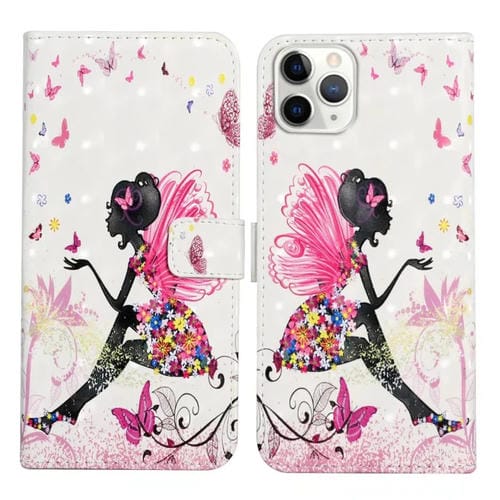 Funda para Teléfono iPhone 12/12 Pro Cuero Dibujo 3D Relieve al Óleo (Hada de Flores)