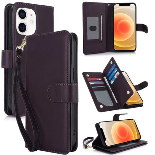 Funda para Teléfono iPhone 12/12 Pro Cuero Rfid con Billetera MultiTarjeta (Púrpura Oscuro)