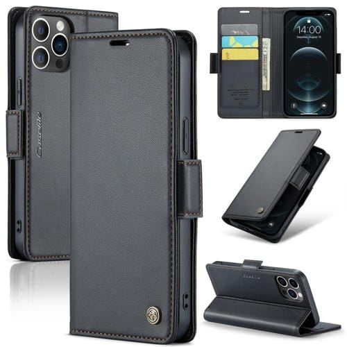 Funda para iPhone 12 Mini Caseme 023 Mariposa Hebilla Litchi Textura Rfid Cuero Antirrobo (Negro)