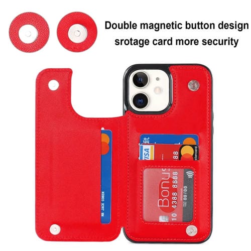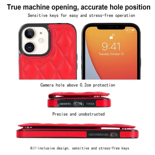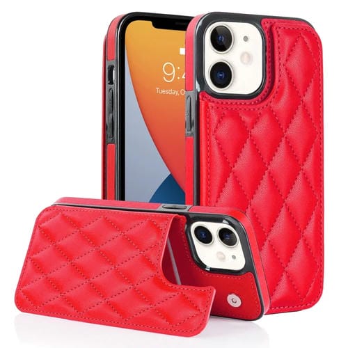 Funda de Teléfono para iPhone 12 Mini Doble Hebilla Cuero Pu Rombal (Rojo)