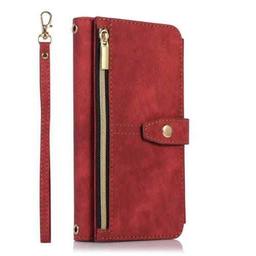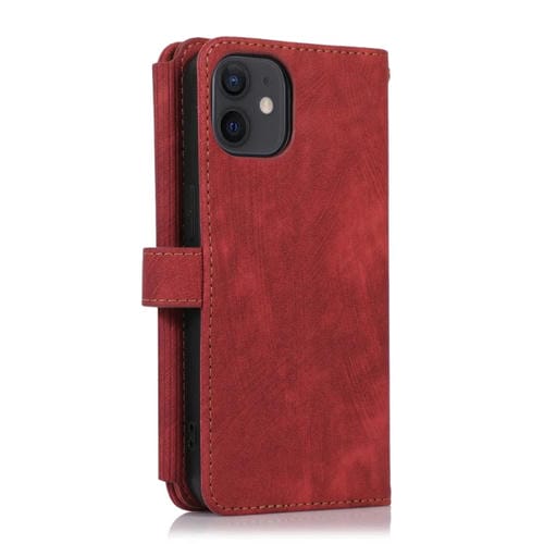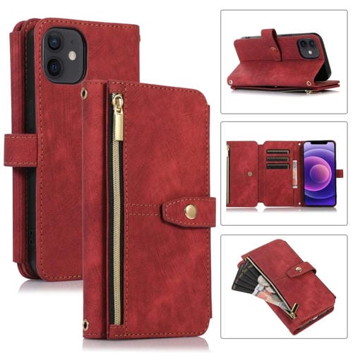 Funda para iPhone 12 Mini Dream 9-Card Wallet Zipper Bag de Cuero para Teléfono (Rojo)