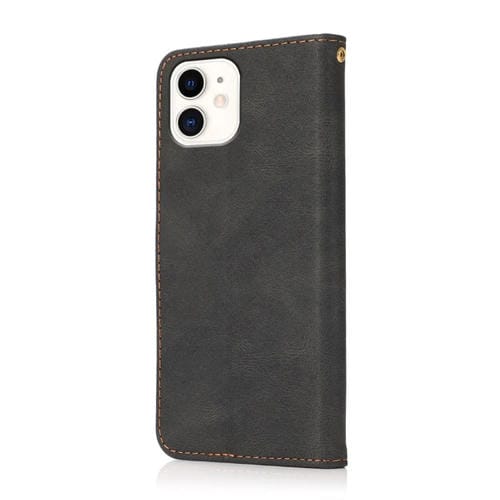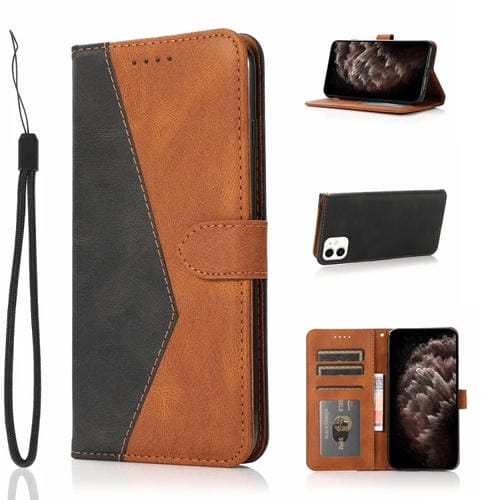 Funda de Teléfono iPhone 12 Mini Cuero con Costuras de Dos Colores (Marrón Negro)