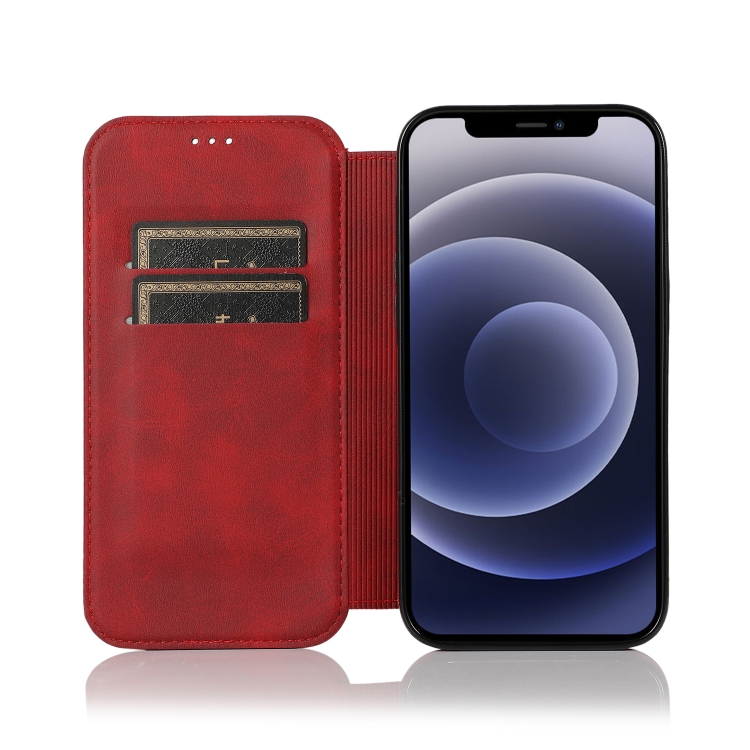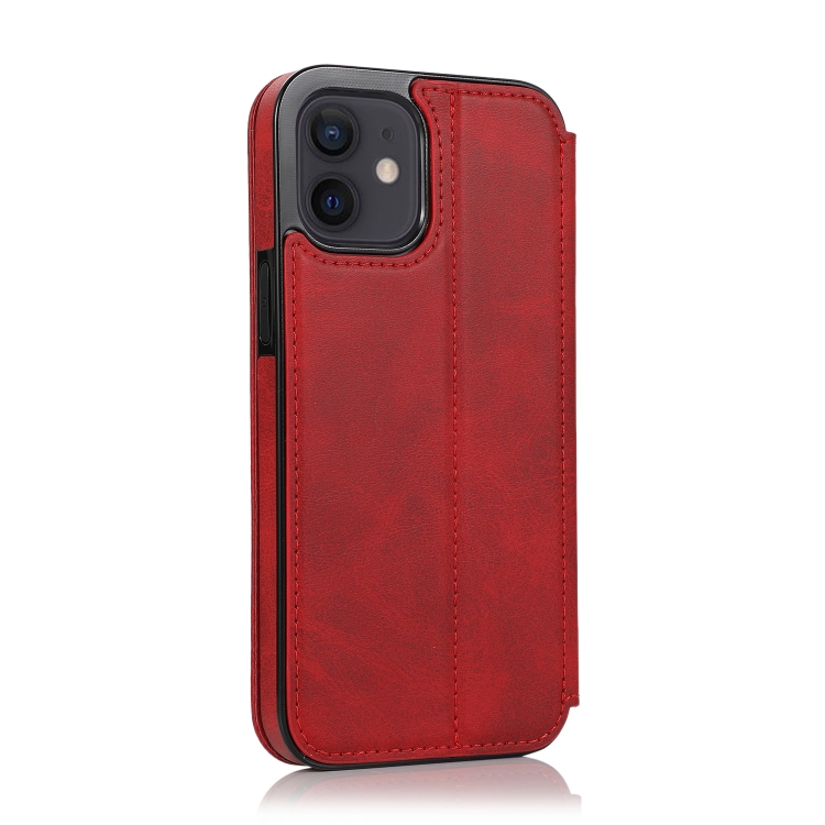 Funda de teléfono iPhone 12 Mini Knight Cuero con Succión Magnética (Rojo)