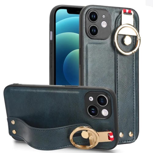 Funda Trasera Muñequera para iPhone 12 Mini Cuero (Azul)