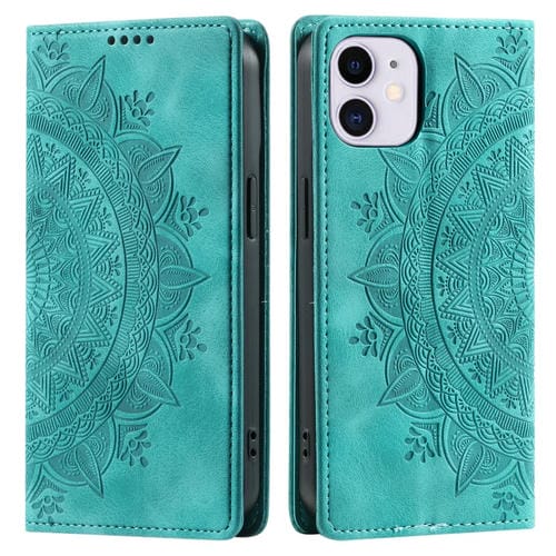Funda de Cuero Magnética Totem para iPhone 12 Mini en Relieve (Verde)