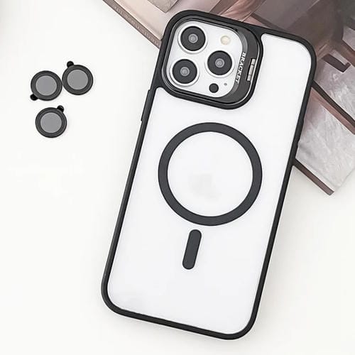 Estuche para Teléfono iPhone 12 Pro TPU Híbrido Acrílico Magsafe con Soporte y Película para Lentes (Negro)