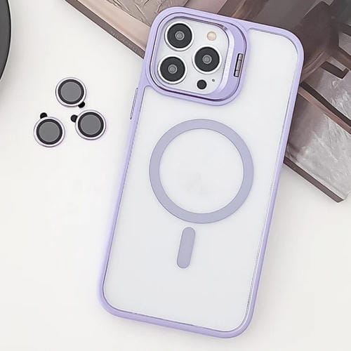 Estuche para teléfono iPhone 12 Pro TPU híbrido acrílico con soporte Magsafe y Película para Lentes (Púrpura Claro)