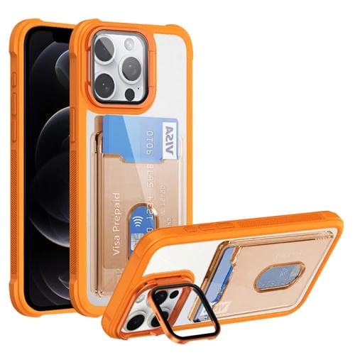Estuche para Teléfono iPhone 12 Pro TPU Híbrido Acrílico con Soporte para Tarjeta (Naranja)