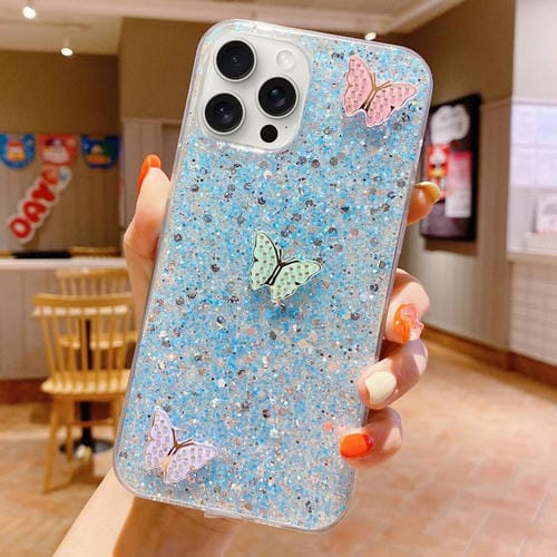 Funda para teléfono TPU Epoxi iPhone 12 Pro con Lentejuelas estrelladas y diamantes de imitación (Azul)