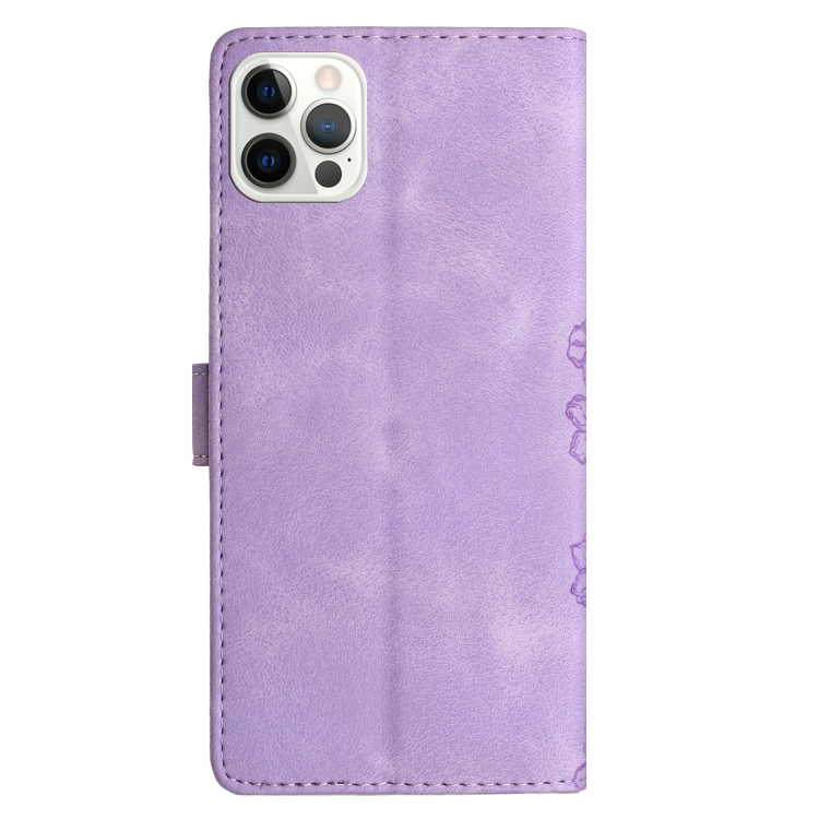 Funda para teléfono iPhone 12 Pro Max Cherry Blossom Butterfly Skin Feel de PU en relieve (Púrpura)