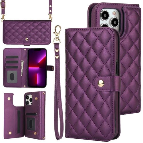 Estuche para Teléfono iPhone 12 Pro Max Crossbody Cuero Rómbico Multifunción (Púrpura Oscuro)