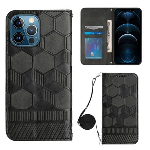 Funda para iPhone 12 Pro Max Crossbody Football Texture Magnética PU (Negro)