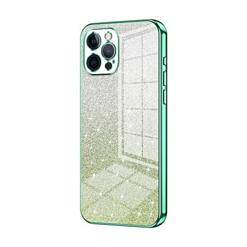 Estuche para Teléfono iPhone 12 Pro Max Galvanizado con Polvo de Brillo Degradado (Verde)