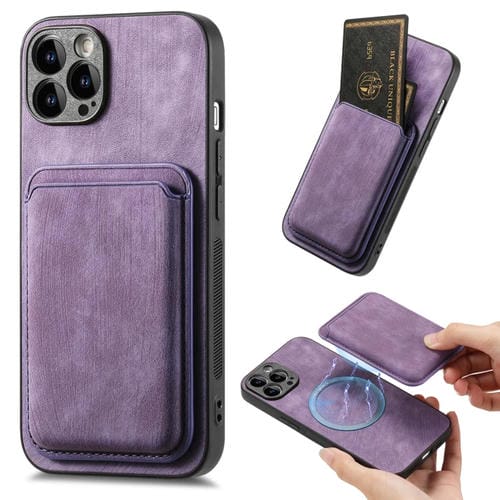Funda de Teléfono iPhone 12 Pro Max Magnética con Bolso de Tarjeta de Cuero Retro (Púrpura)