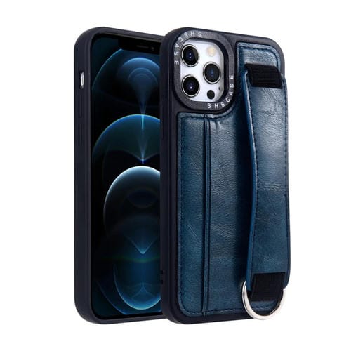 Marco de Fotos Tarjeta Monedero Correa de Muñeca Titular Contraportada Caja del Teléfono iPhone 12 Pro Max (Azul Real)