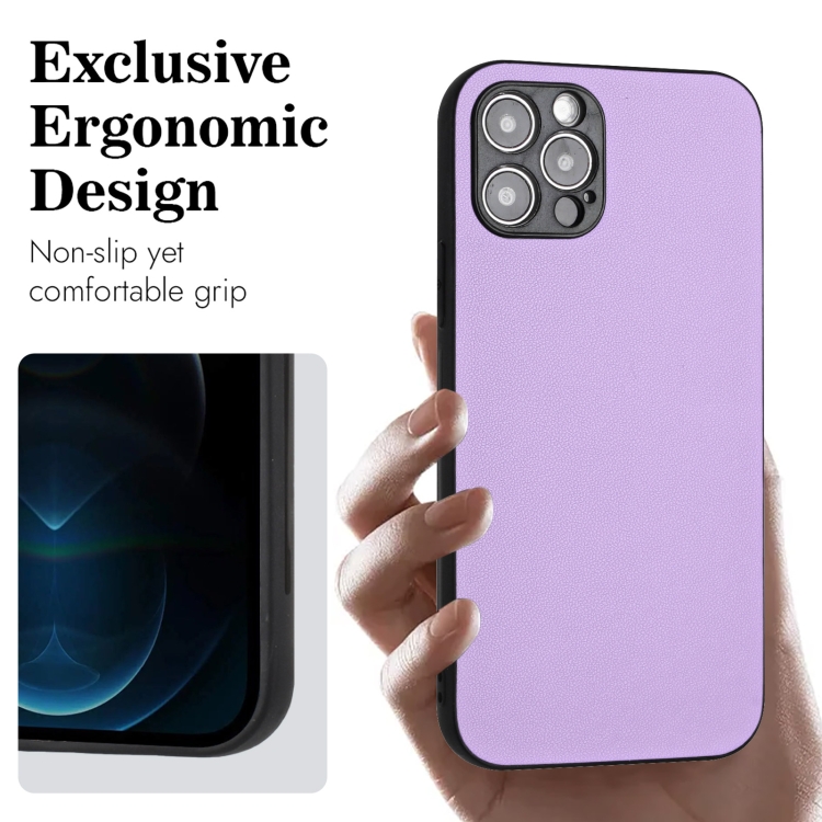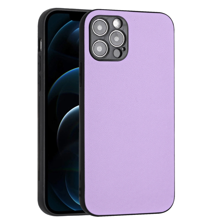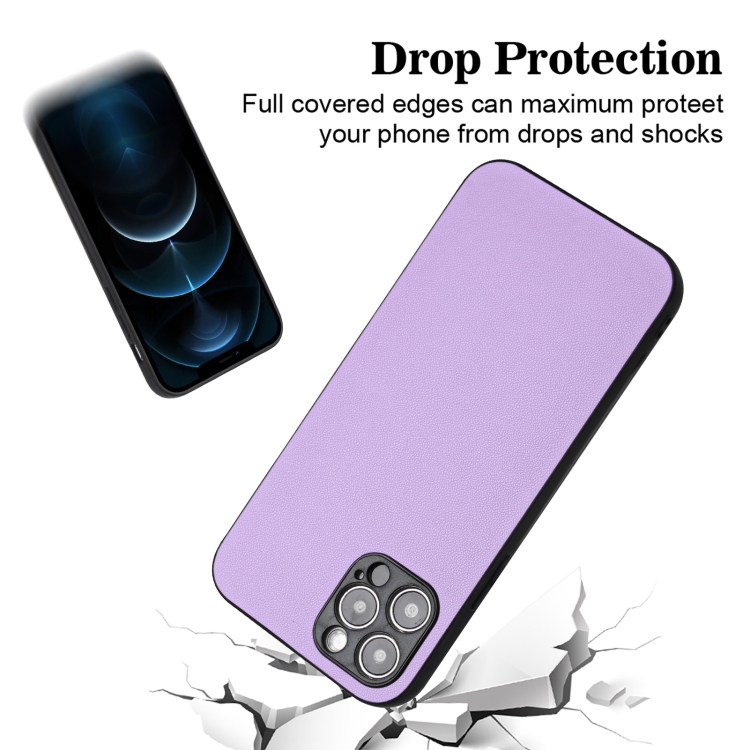 Funda para iPhone 12 Pro Max R20 con Patrón de Cuero (Púrpura)