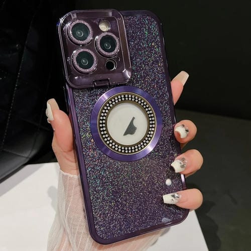 Estuche para Teléfono iPhone 12 Pro Max Starry Glitter Magsafe con Soporte para Lente (Púrpura)
