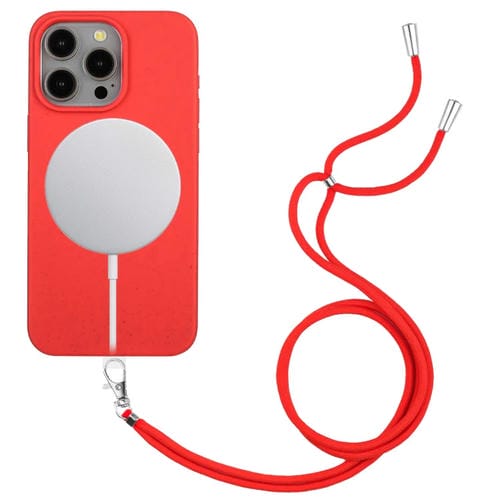 Funda para teléfono iPhone 12 Pro Wheat Magsafe Material de Paja Magnético + TPU con Cordón (Rojo)