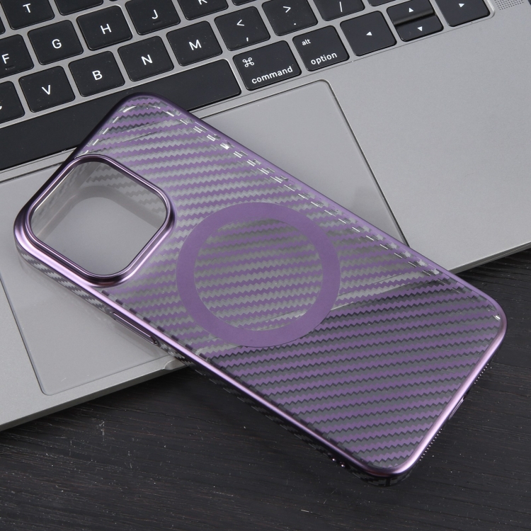 Caja de Teléfono para iPhone 13 PC Magsafe Transparente con Fibra de Carbono (Púrpura Aurora)