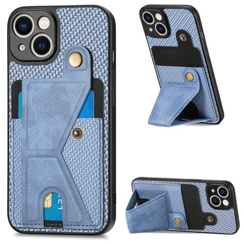 Funda para Teléfono iPhone 13 Fibra de Carbono Monedero Flip Card con Soporte en Forma de K (Azul)