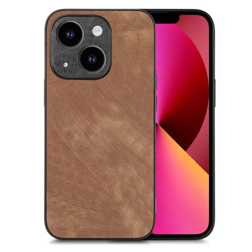 Funda de Teléfono para iPhone 13 con Contraportada de PC de Cuero Vintage (Marrón)