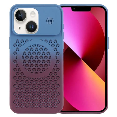 Funda Magnética para Teléfono iPhone 13 Aromaterapia Enfriamiento de Panal (Azul Rojo)