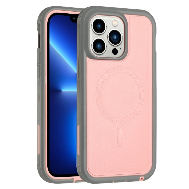 Funda para iPhone 13 Pro Defender Series Xt Magsafe Magnetic PC + TPU a Prueba de Golpes (Rosa + Gris)