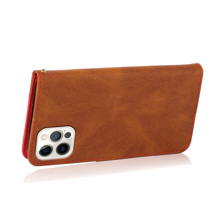 Estuche para Teléfono iPhone 13 Pro Cuero Costuras Dos Colores (Marrón Rojo)