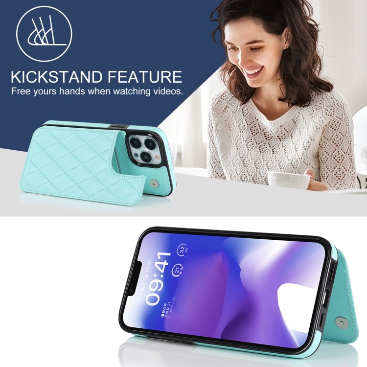 Estuche para Teléfono iPhone 13 Pro Cuero Pu Doble Hebilla Rombal (Azul)