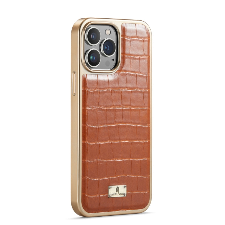 Funda para iPhone 13 Pro Fierre Shann Cocodrilo Textura Galvanoplastia Pu (Marrón)