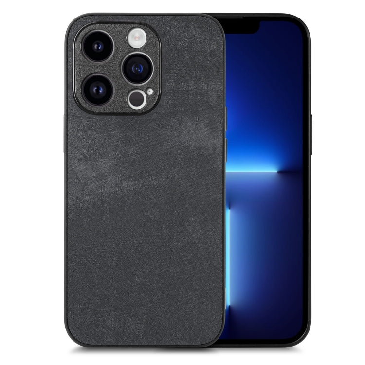 Funda de teléfono para iPhone 13 Pro con contraportada de PC de cuero vintage (Negro)