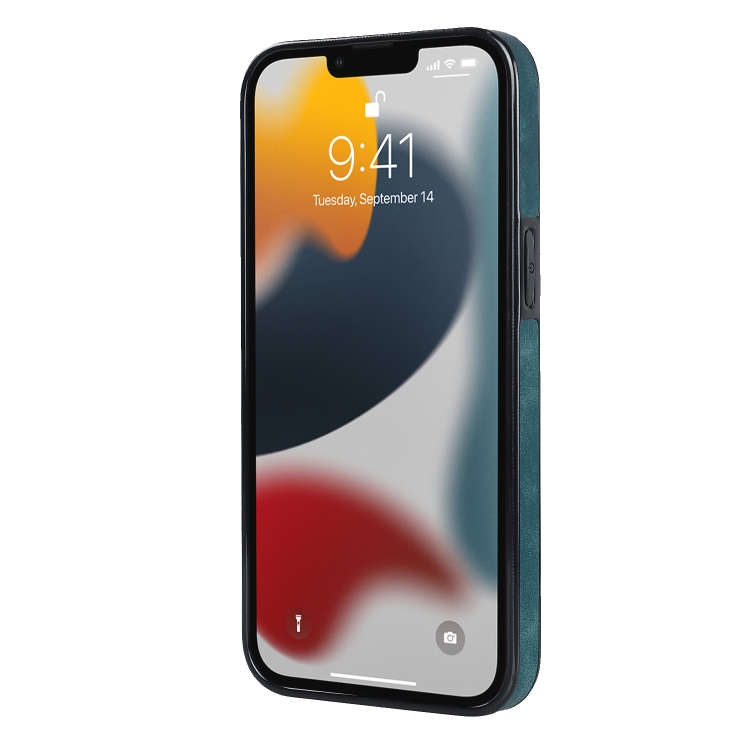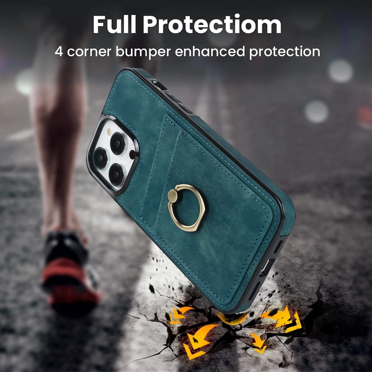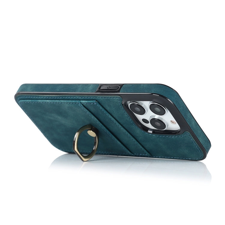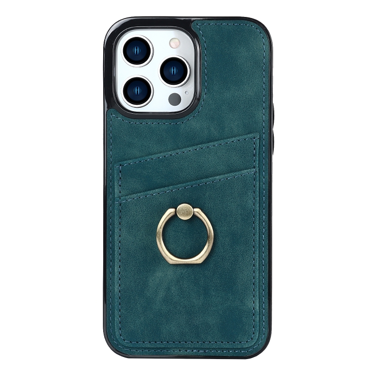 Funda de Teléfono iPhone 13 Pro Cuero Parche Vintage Soporte para Anillo (Azul)
