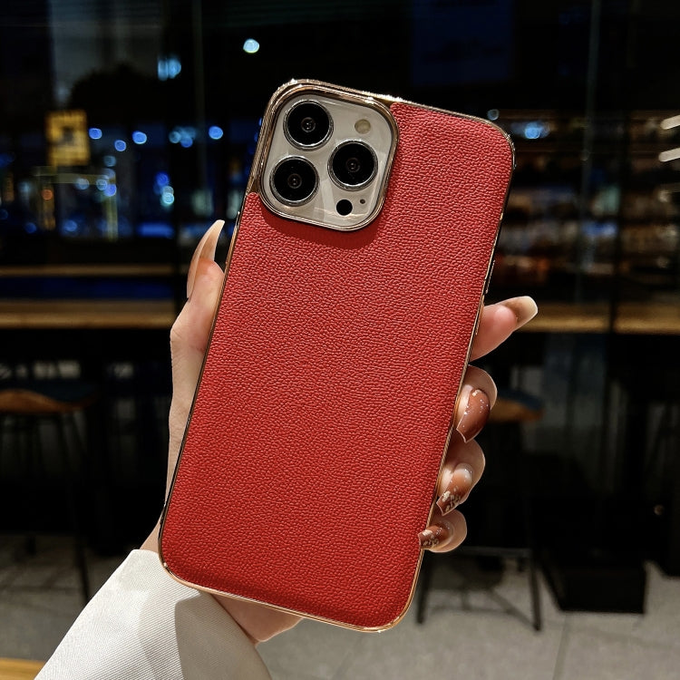 Funda de teléfono Luolai Series para iPhone 13 Pro Cuero Genuino Nano Galvanoplastia (Rojo)