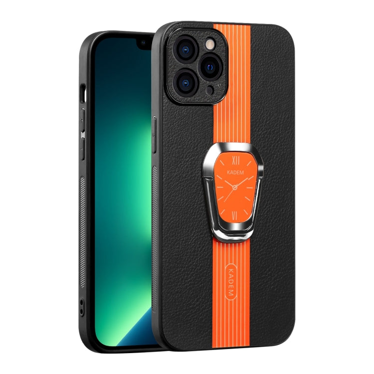 Estuche Magnético iPhone 13 Pro Max con Parte Trasera de Cuero Litchi y Soporte (Naranja)