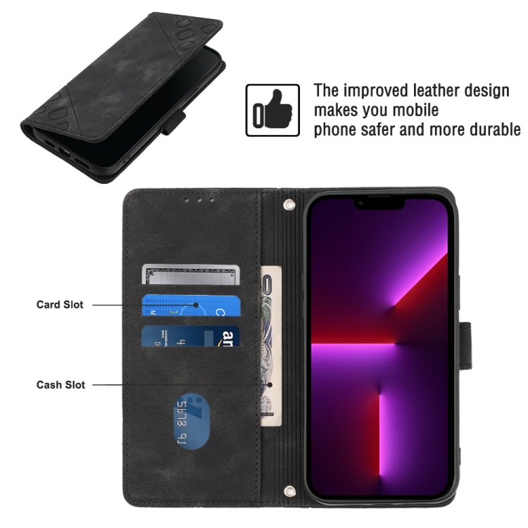 Estuche para Teléfono iPhone 13 Pro Max Cuero En Relieve con Tacto de Piel (Negro)
