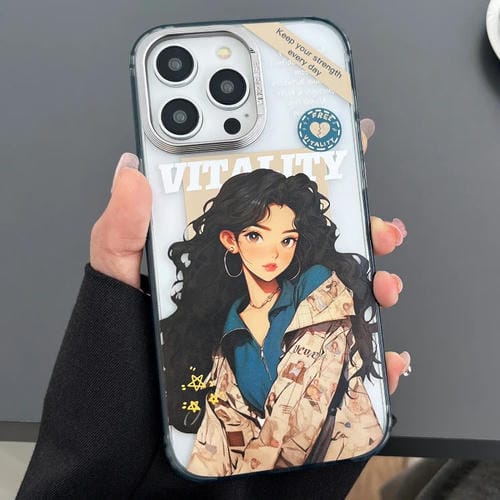 Estuche para teléfono iPhone 13 Pro Max Dibujos Animados Coloridos Grabados (Chica de Moda)