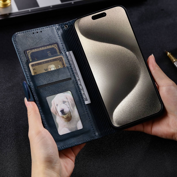 Funda para Teléfono iPhone 13 Pro Max Cuero con Billetera para 6 Tarjetas (Azul Marino)