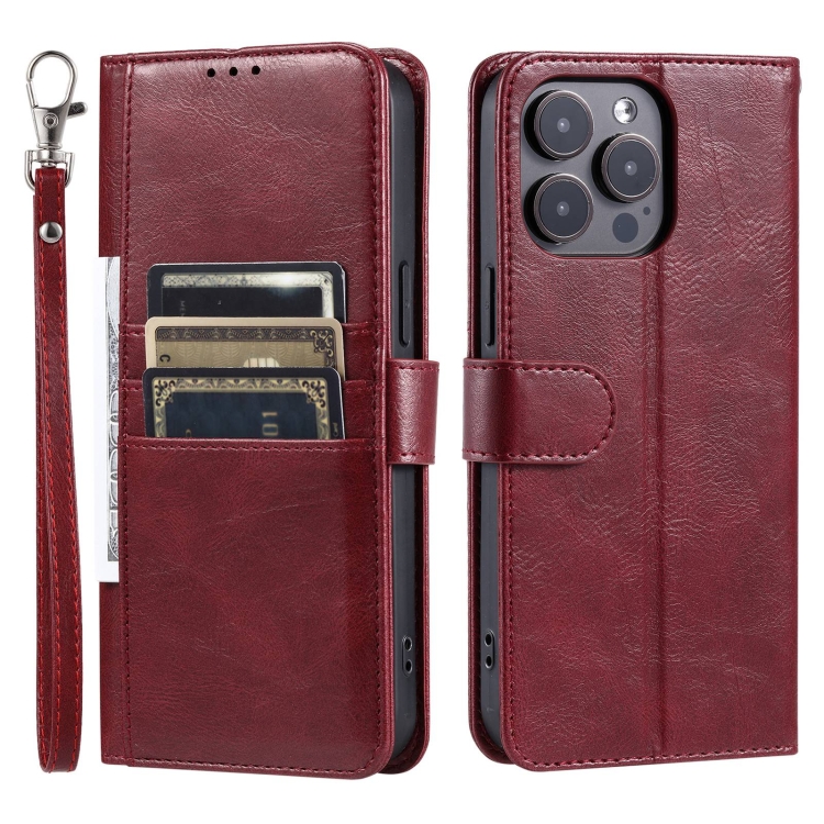 Funda para Teléfono iPhone 13 Pro Max Cuero con Billetera para 6 Tarjetas (Rojo Vino)