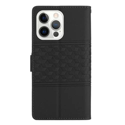 Funda para Teléfono iPhone 13 Pro Max Cuero Tacto de Piel En Relieve con Cordón (Negro)