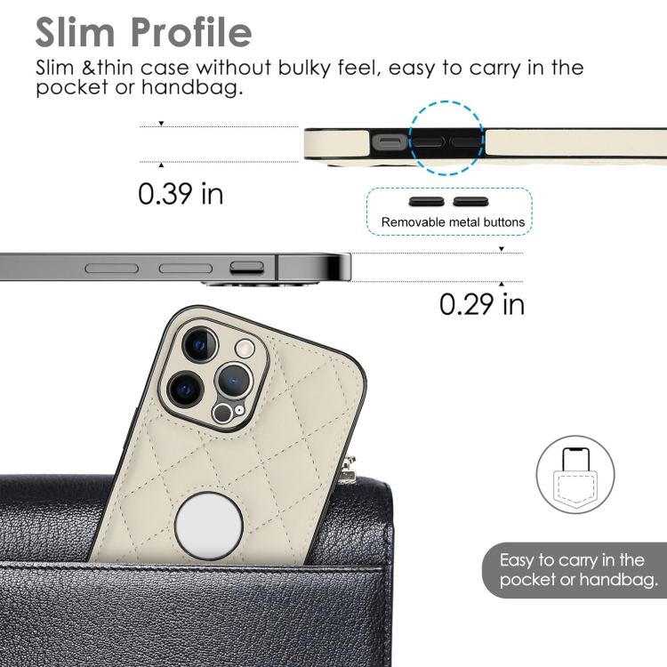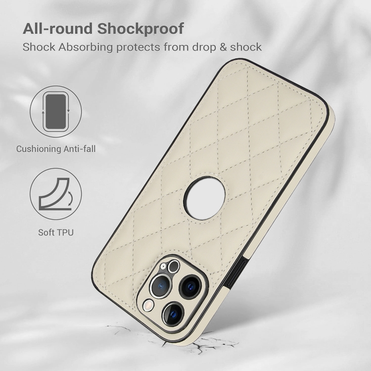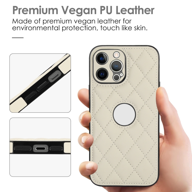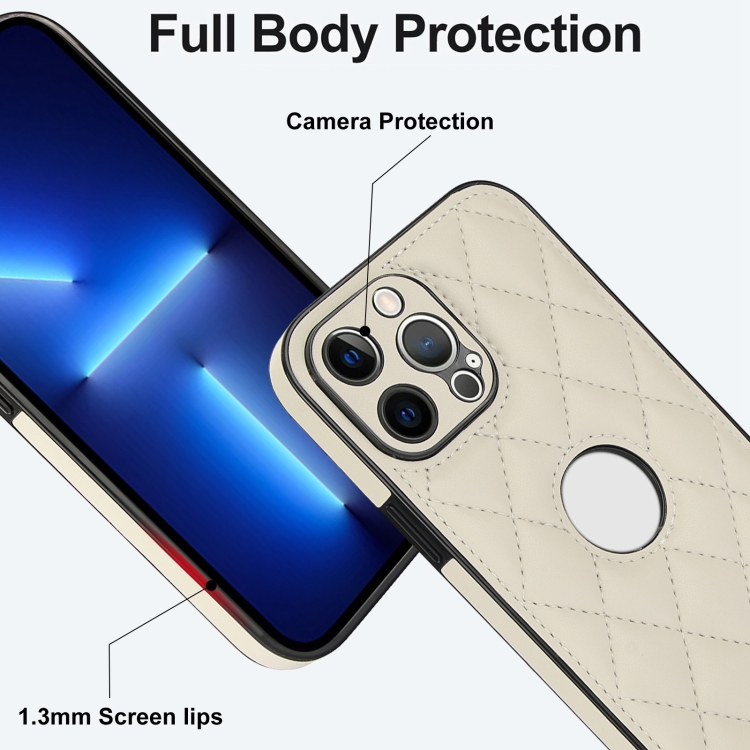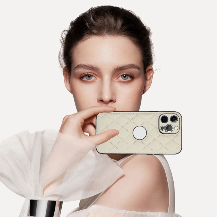 Funda para Teléfono iPhone 13 Pro Max con Contraportada de Cuero Rómbico (Blanco)